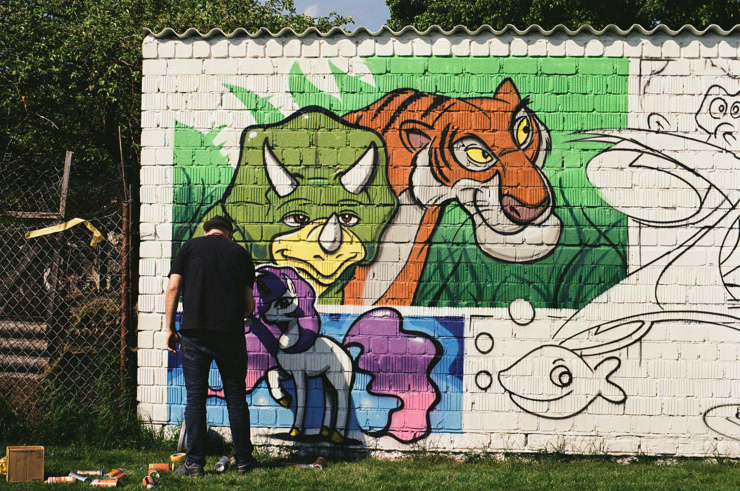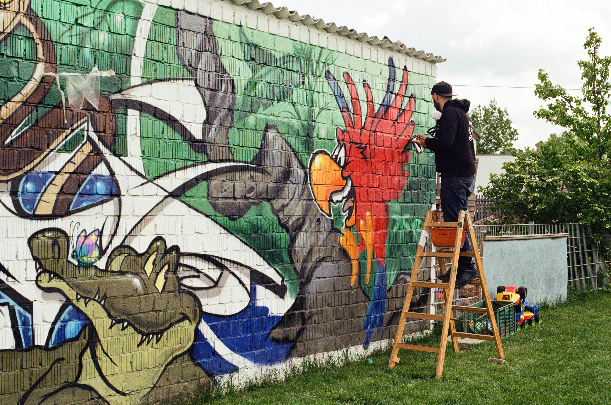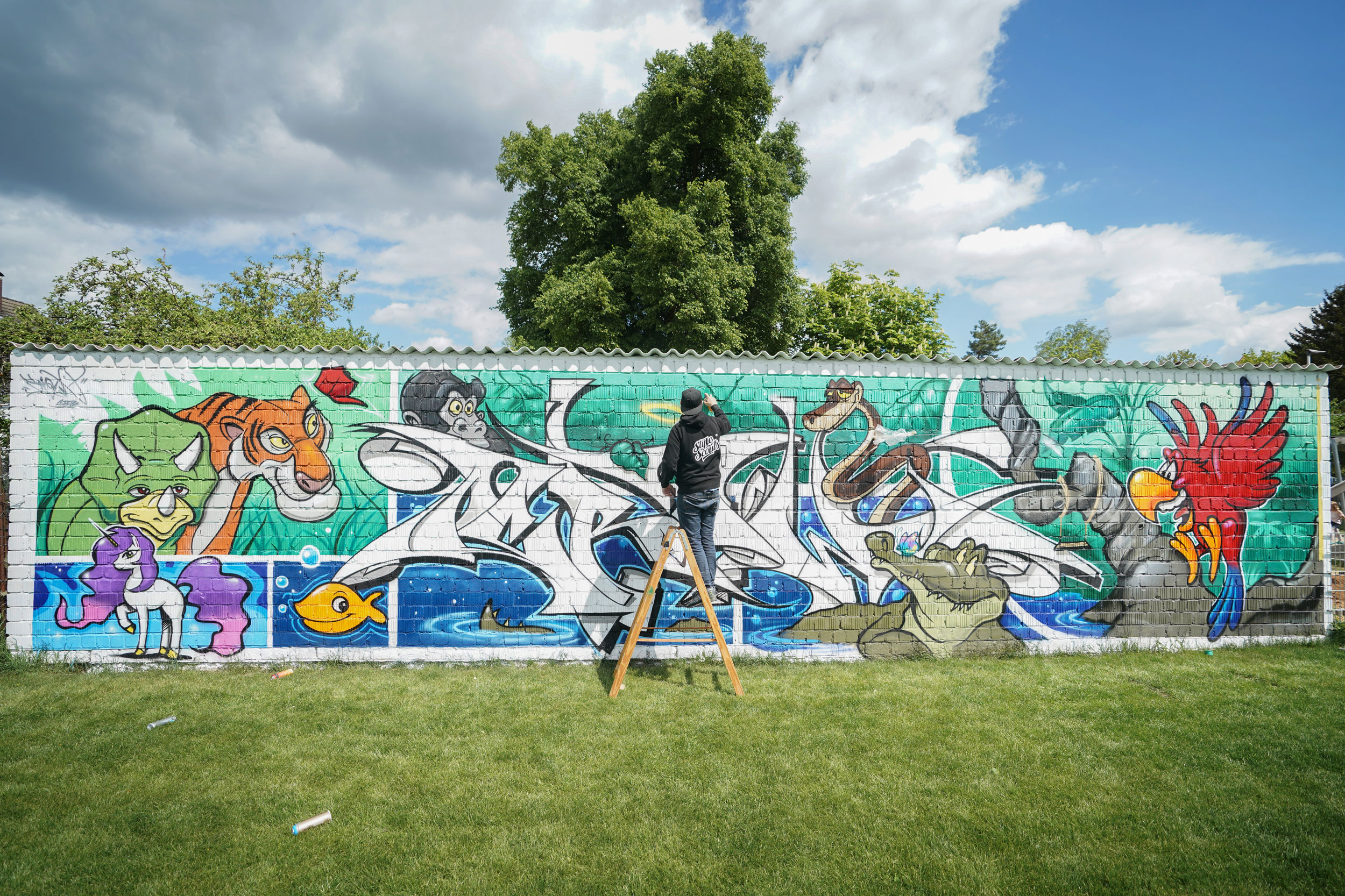 Der Graffiti-Künstler Kid Crow aka Carlos Lorente war für die Planung und Umsetzung des Werkes zuständig und zauberte dieses Meisterwerk innerhalb von zwei Werktagen. Die Kinder der Tagesstätte konnten vorab sogar Ihre Motiv-Wünsche äußern, welche der Künstler mit Freunde umsetzte.